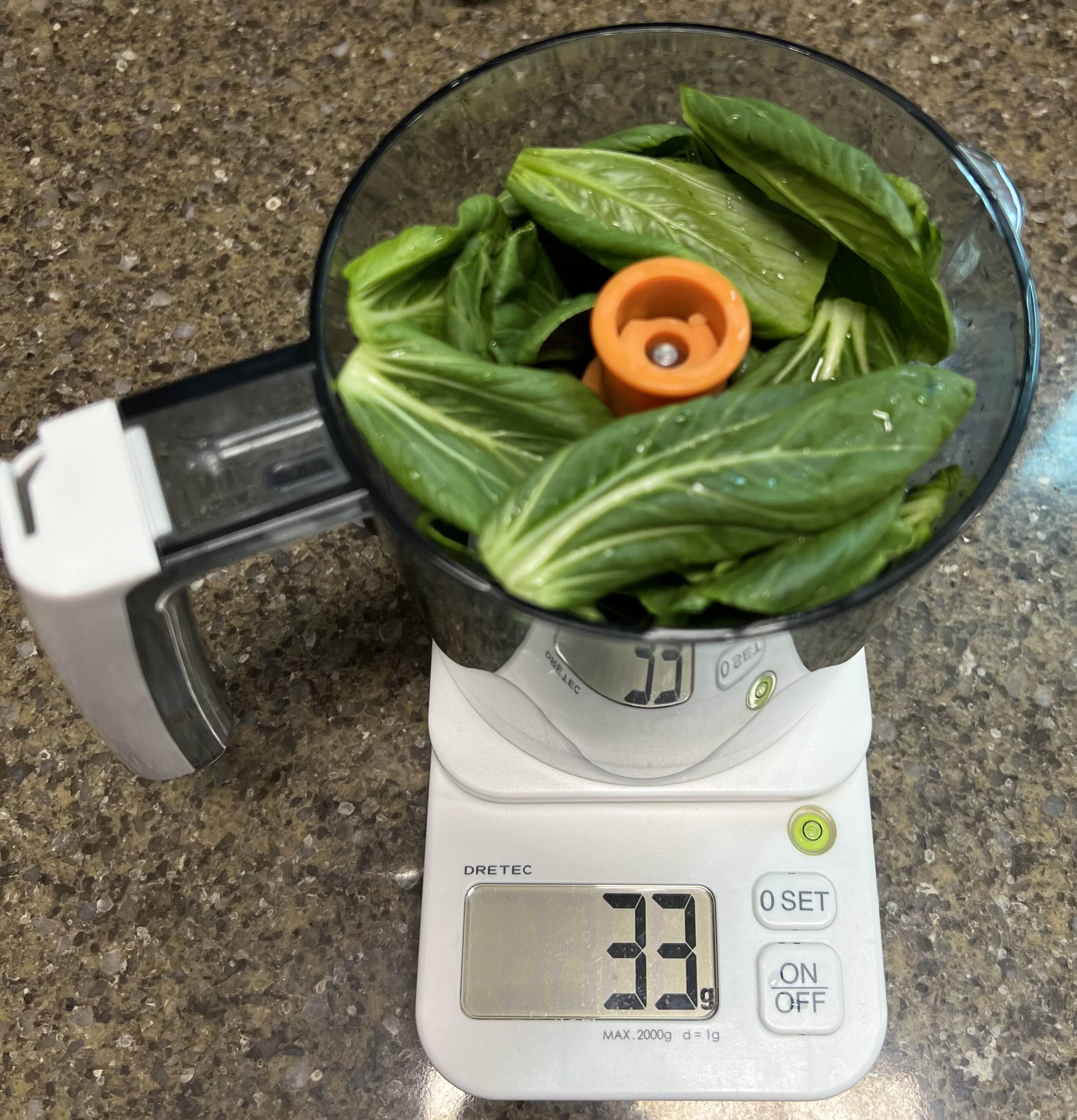 1. 줄기 제거한 청경채 33g을 통에 담은 후