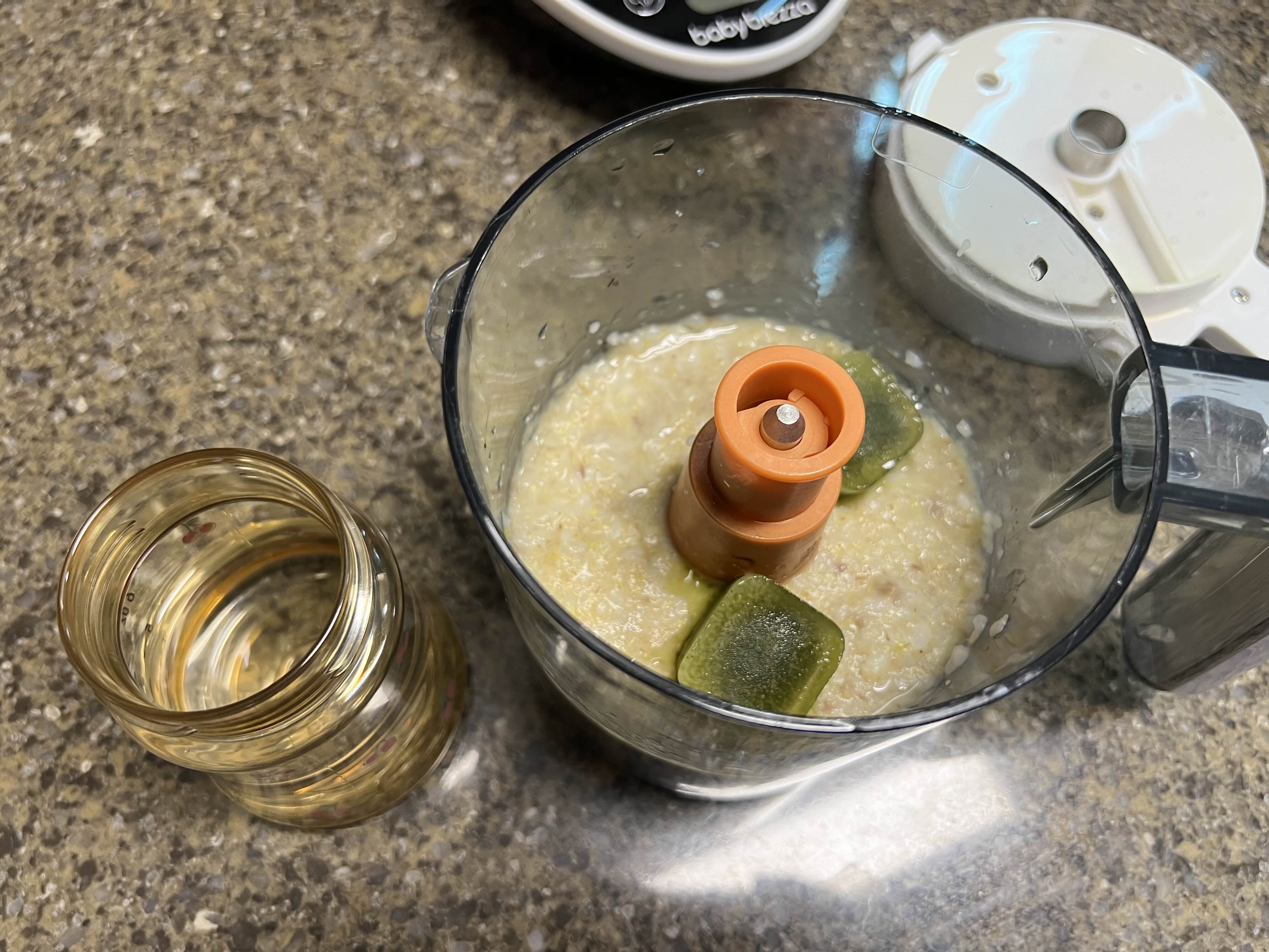 쌀, 오트밀, 애호박, 청경채, 소고기 죽을 만들었다.