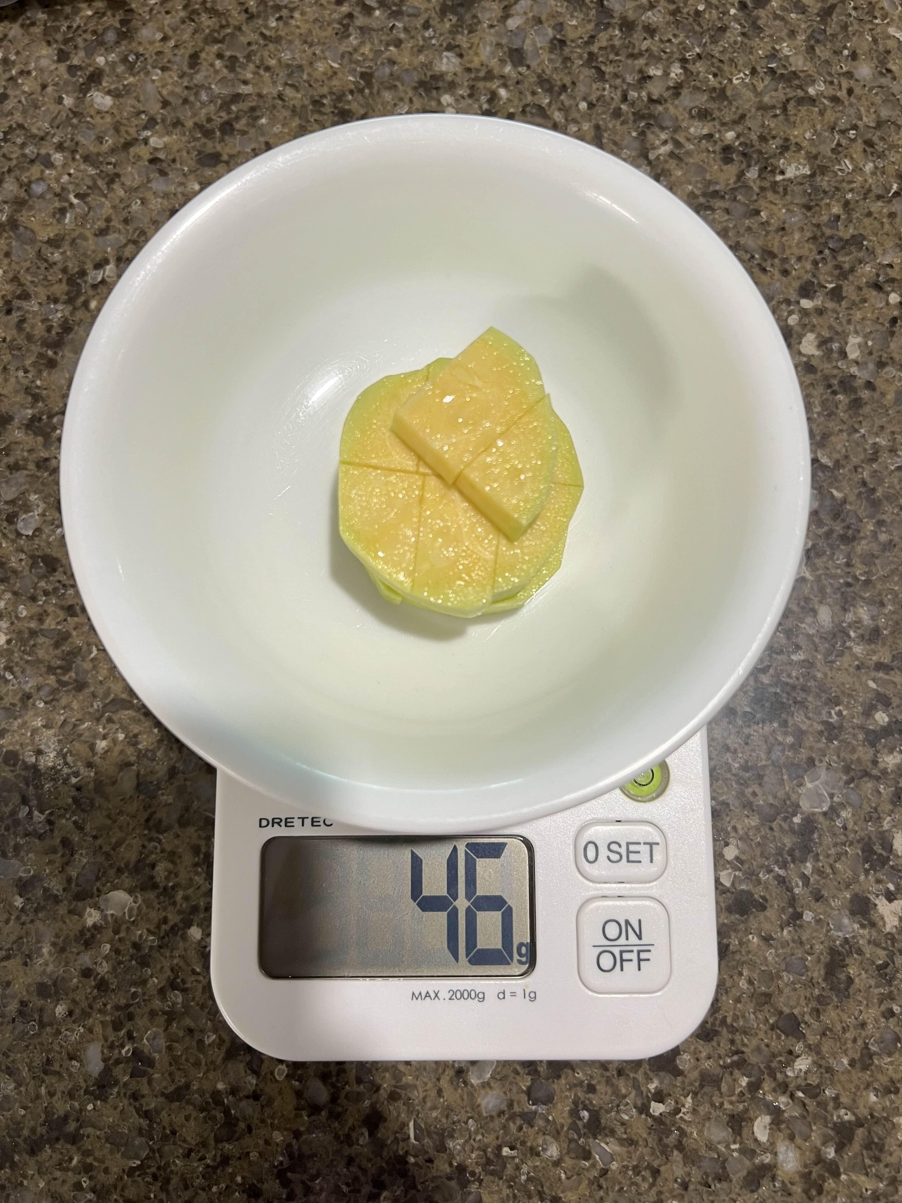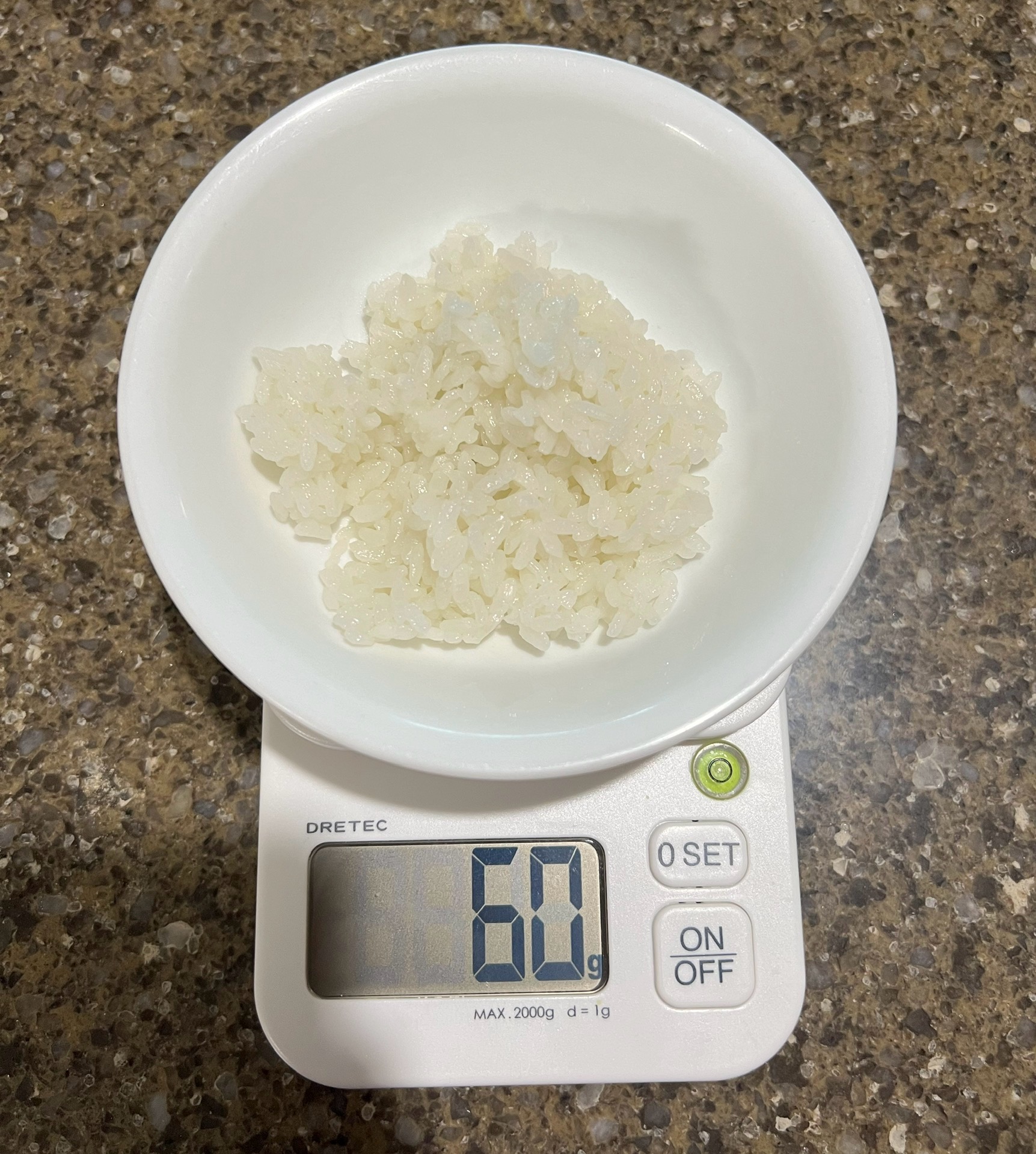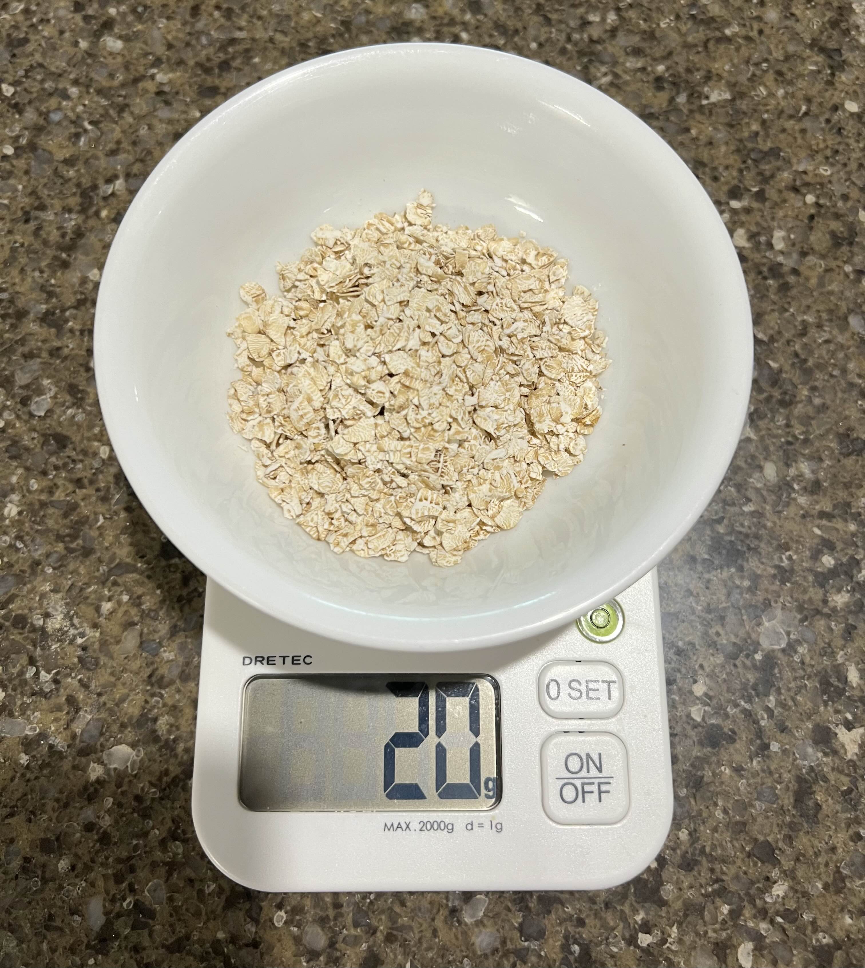 1. 애호박 46g, 오트밀 20g, 흰쌀밥 60g, 호주산 소고기 45g 계량