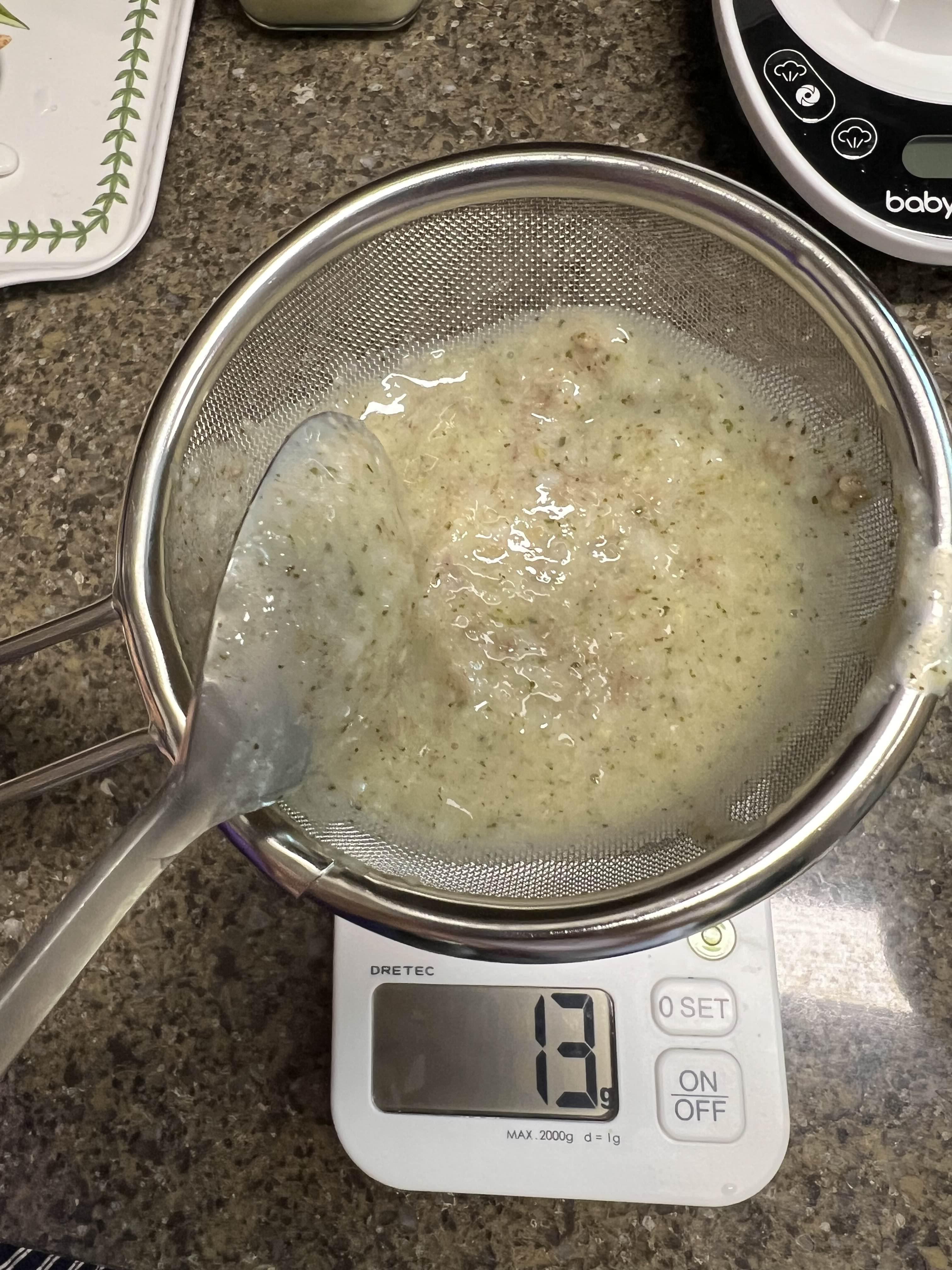 쌀, 오트밀, 애호박, 청경채, 소고기 죽을 만들었다.