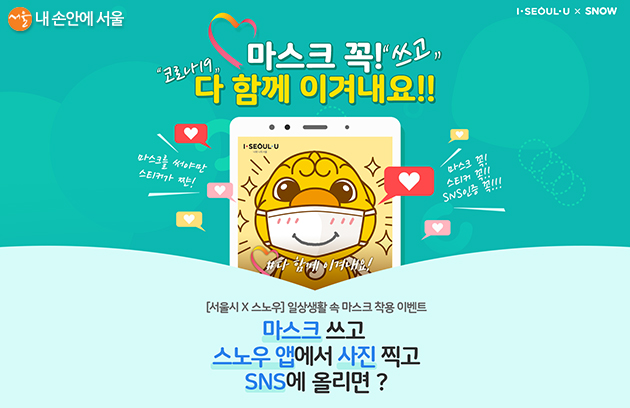 서울시와 스노우는 마스크 착용 참여를 독려하기 위해 참여자가 마스크를 착용했을 때만 스티커(필터) 효과가 나타나도록 기획했다.