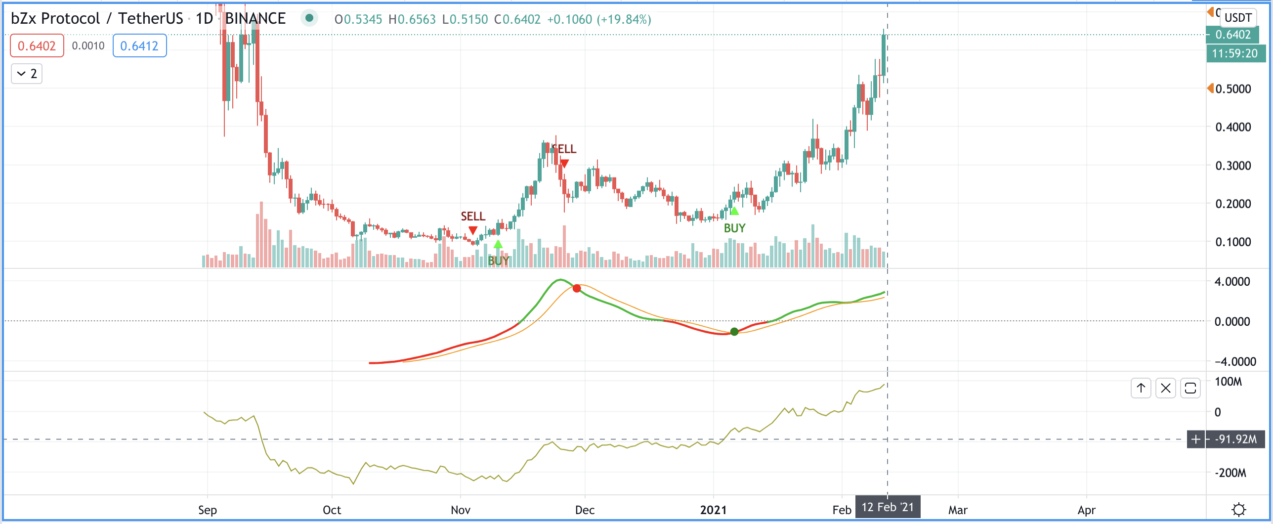 알트코인 사냥을 하던 중에 발견한 BZRX 코인. bZx Protocol의 거버넌스 토큰이라고 한다. <일봉> AD line이 우상향 하고 있다. 주봉으로 본다면, W 모양을 그리고 있다. 또한 직전 고점 돌파 직전이다.