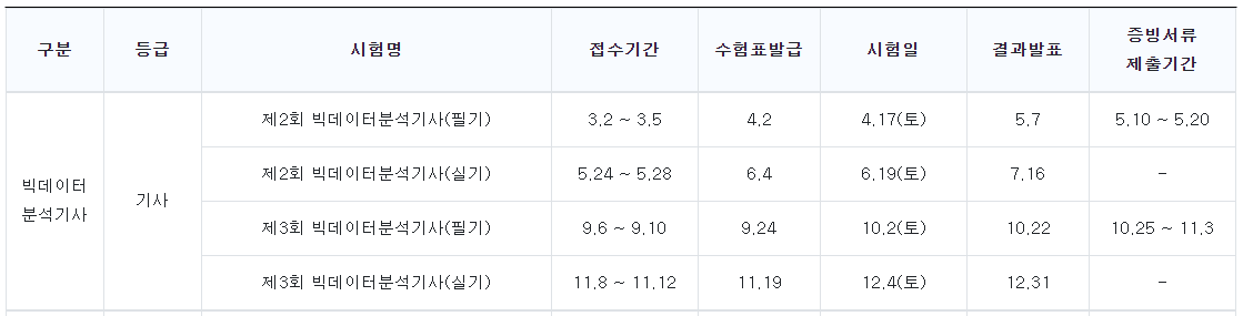 2021 빅데이터 분석기사 시험일정통계 2021. 2. 26. 11:29반응형