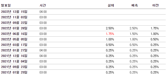 50bp인상을 희망(예상인가..)했으나 75bp 인상해버렸다. 예측치와 다른데도 꽤나 올랐다.