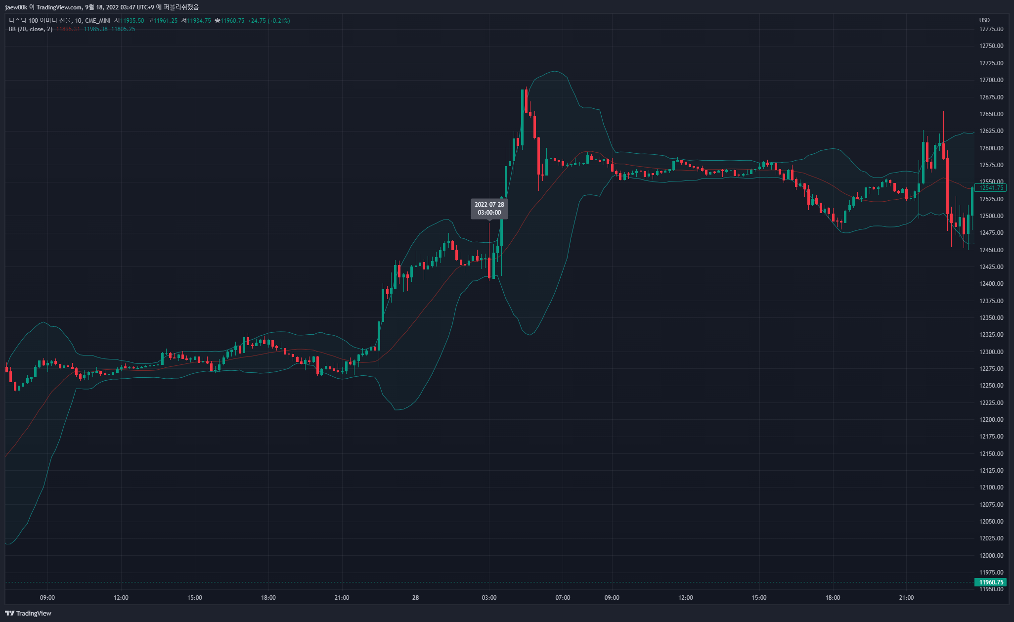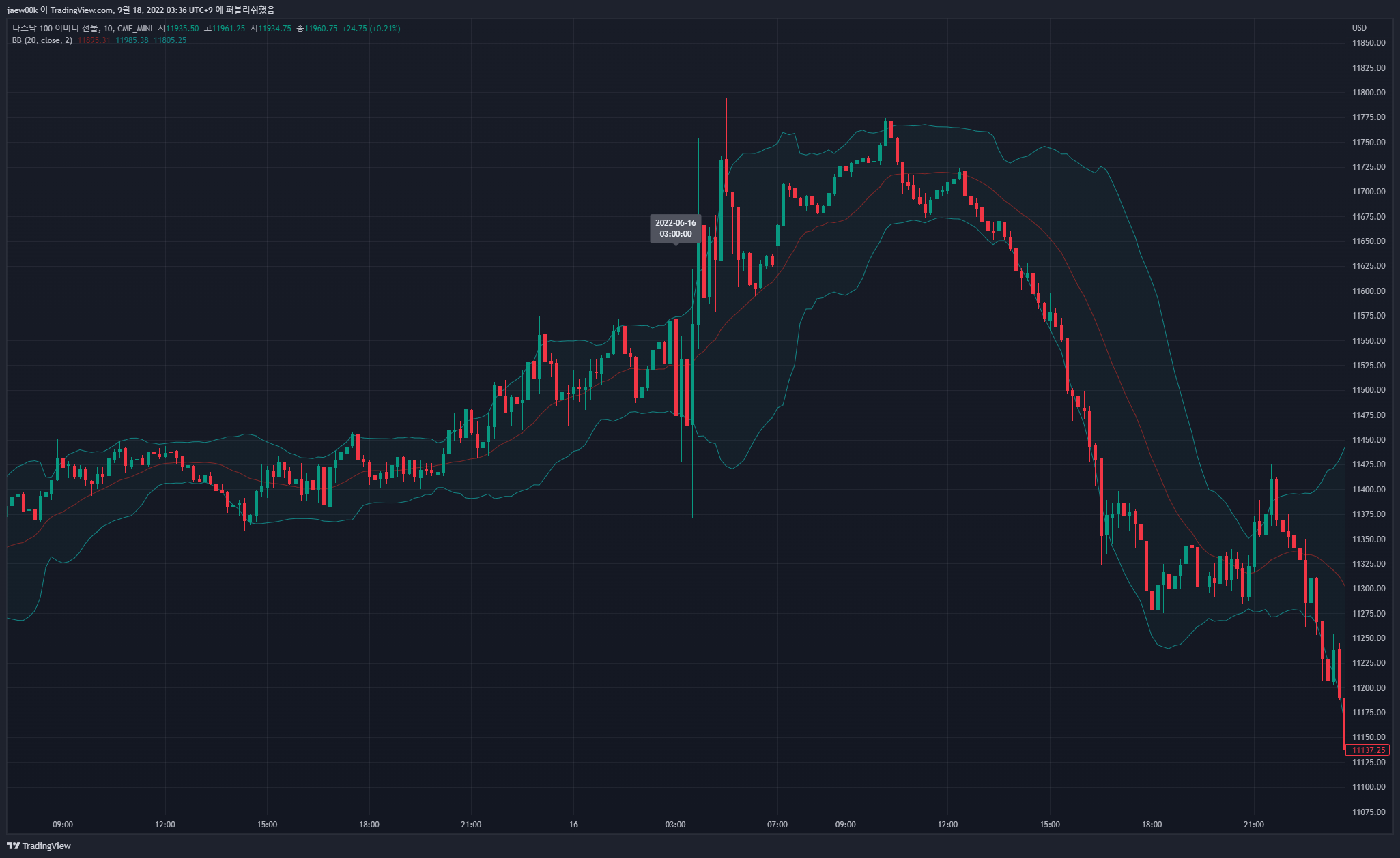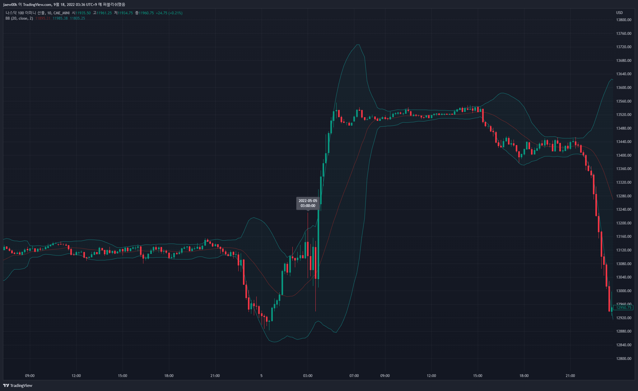 일단 5월5일 어린이날 03시 부근의 나스닥 100 이미니 선물 10분봉 차트이다.
