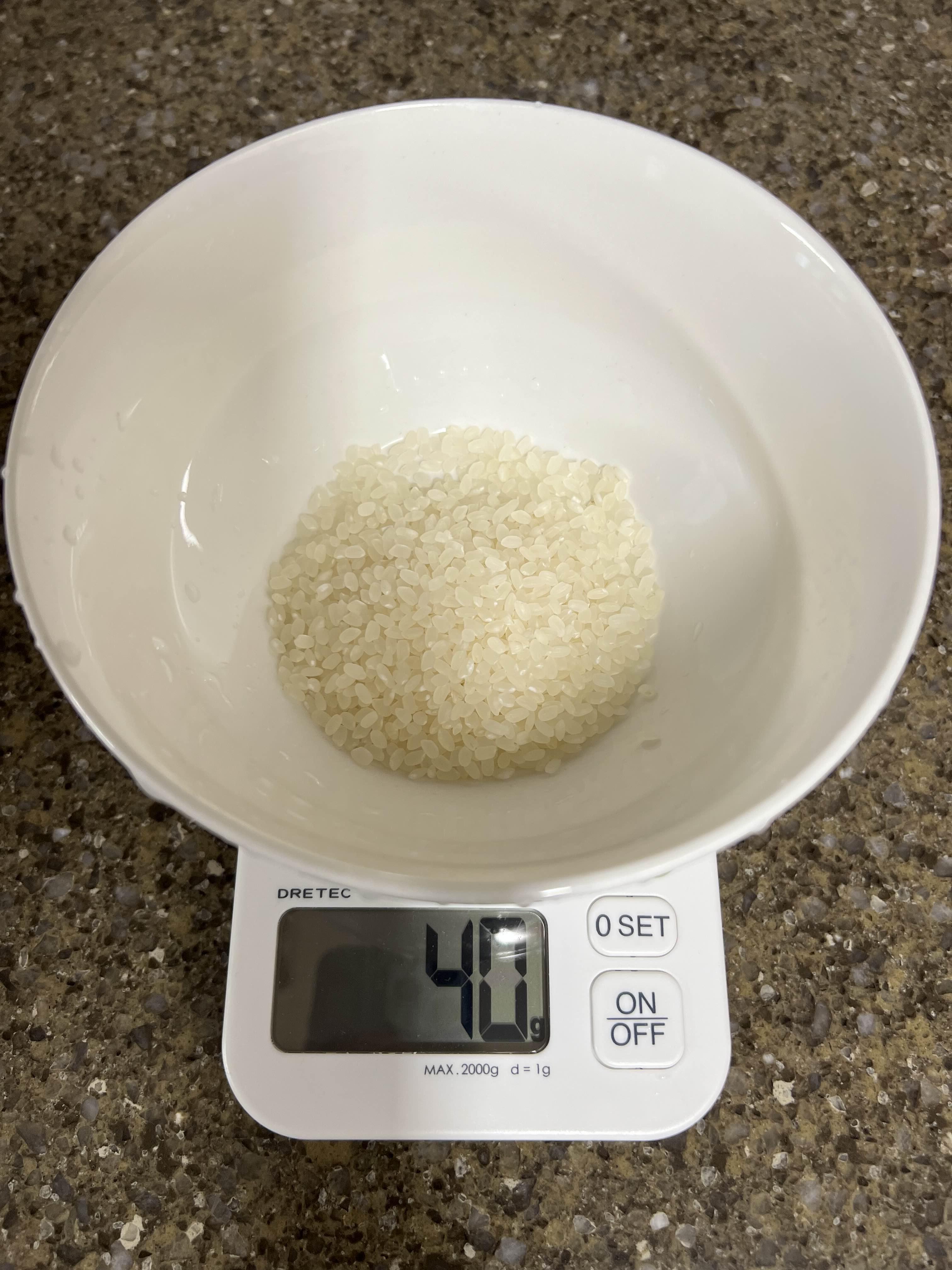 1. 흰 쌀 40g 준비! 물에 30분간 불려줬다.