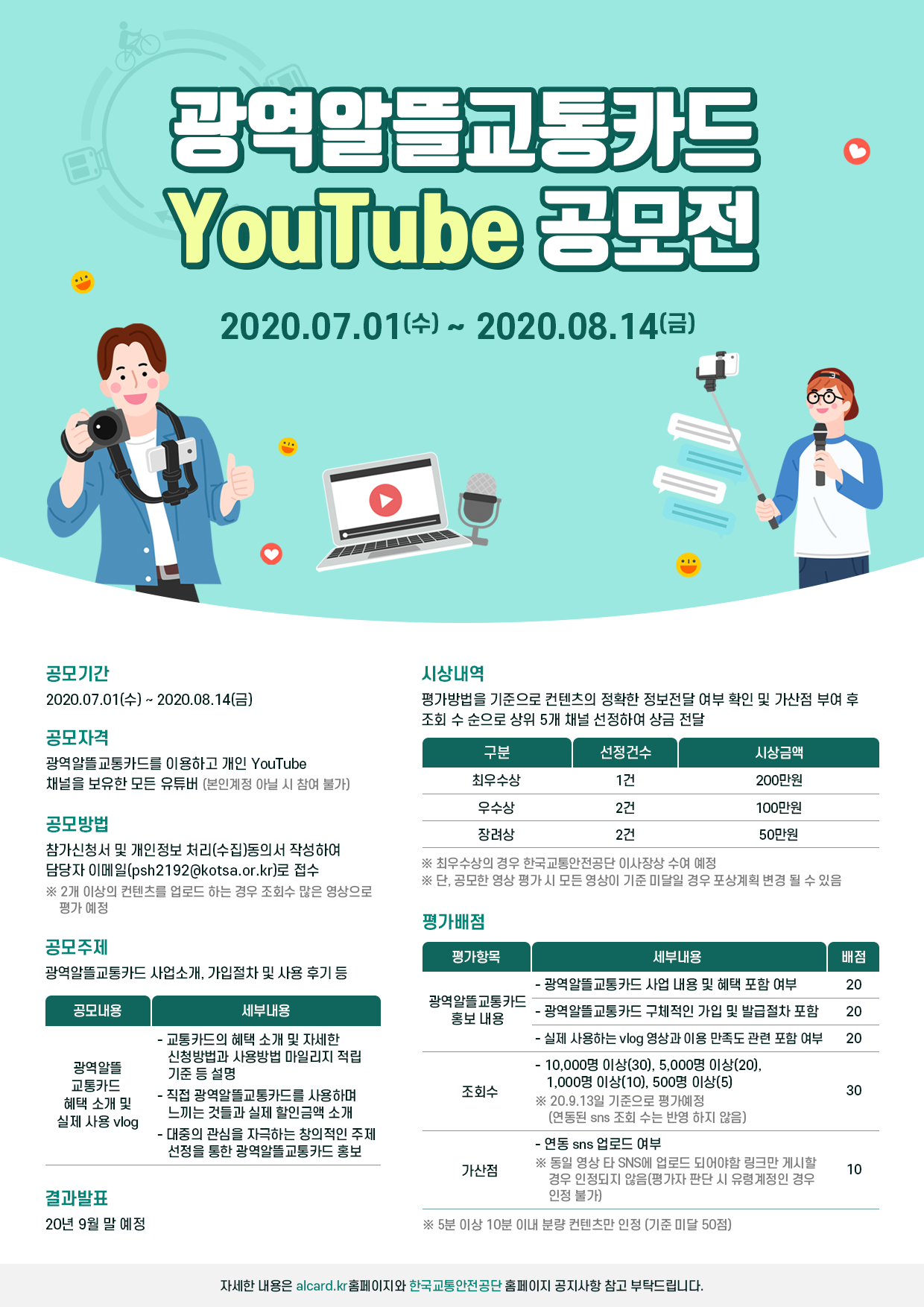 - 대회명 : 광역알뜰교통카드 YouTube 공모전