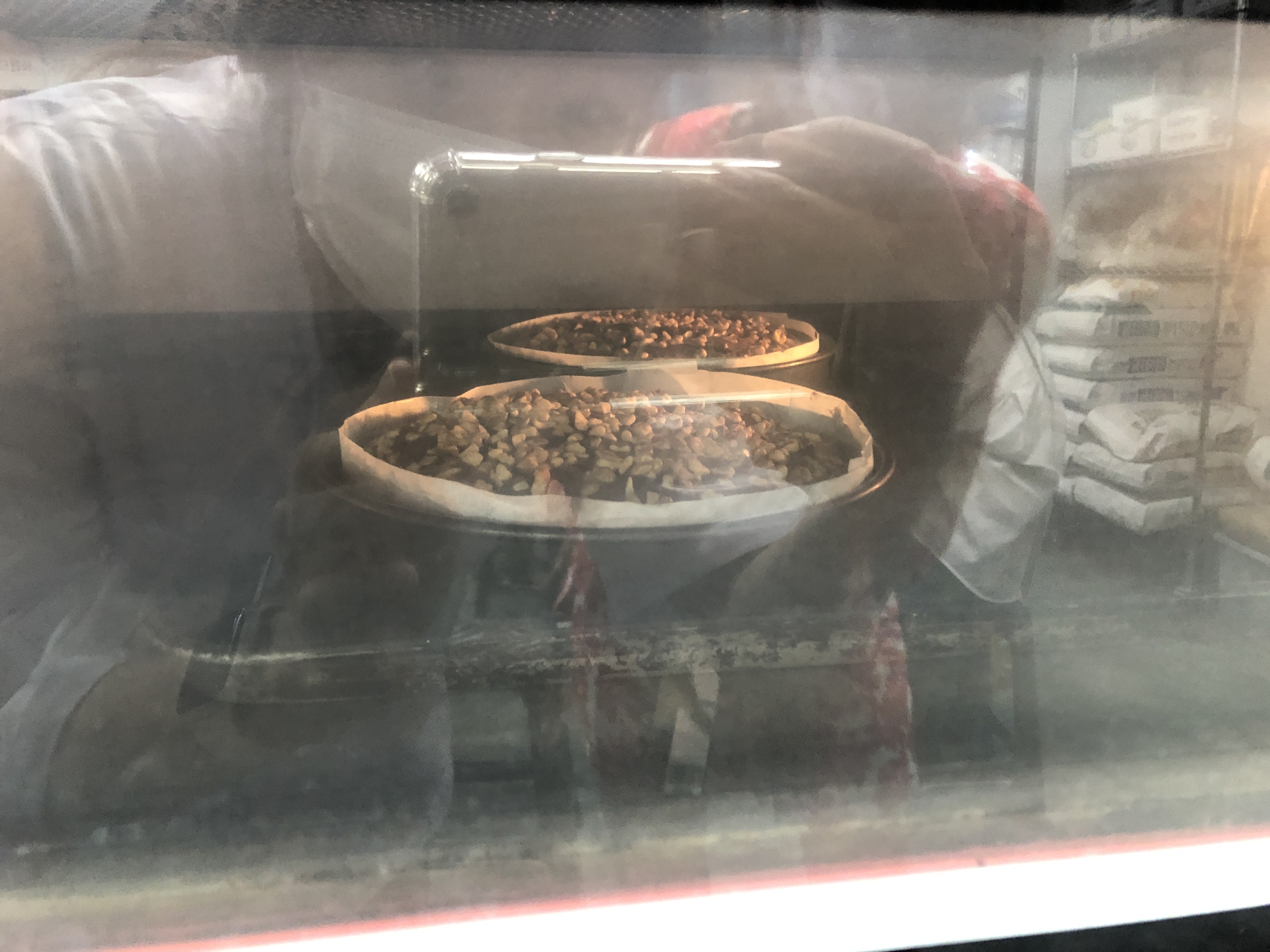 ⑦ 호두의 1/2는 반죽에 사용(얘만 5분정도 오븐에 구워서 사용)하고, 1/2는 토핑에 사용*(참고) 원형팬 사이즈 : 1호 15cm, 2호 18cm, 3호 21cm 4호 24cm