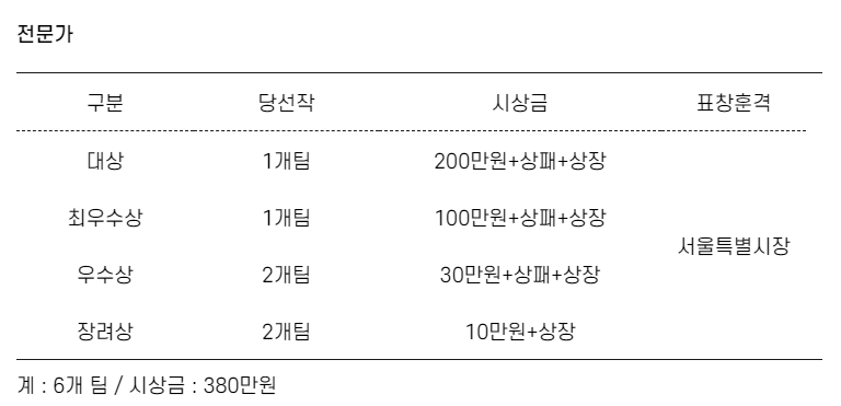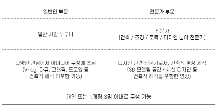 - 응모자 : 누구나 참여가능(일반인 부문 / 전문가 부문)